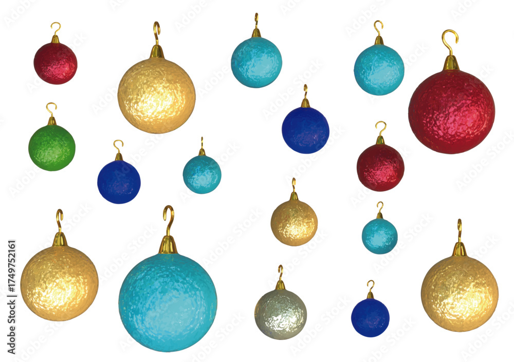 Some colored Christmas ornament balls isolated vector objects created by 3D modeling. #1749752161