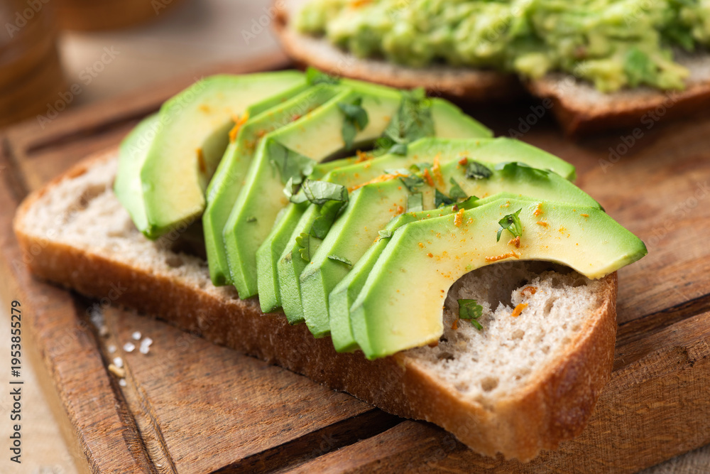 Sourdough bread toast with avocado topping. Vegan snack #1953855279