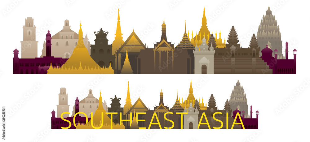 Southeast Asia Skyline Landmarks with Text #290255934