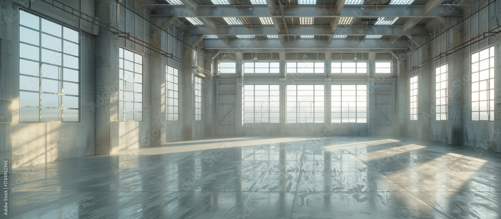 Spacious industrial loft illuminated by natural light #1764962966