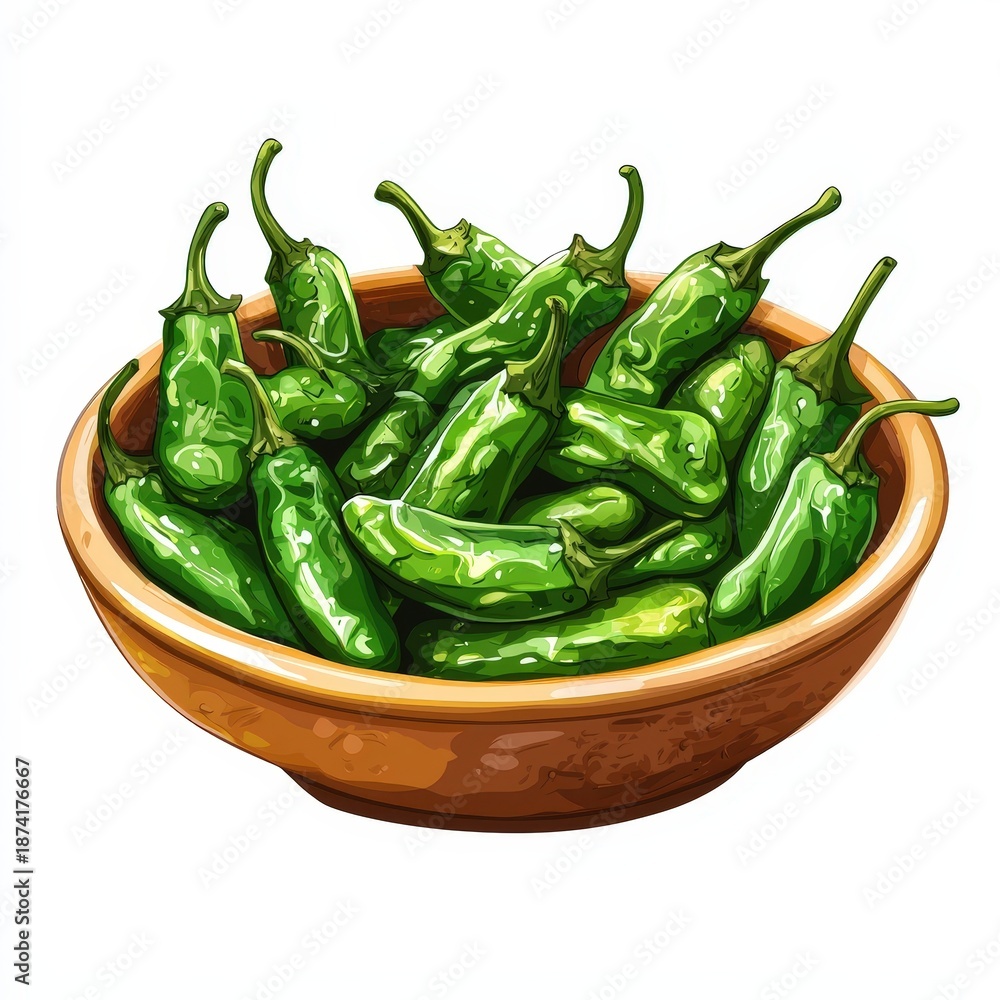 Spanish food pimientos de padron national cuisine dish isolated on white background, colorful cartoon illustration #1874176667