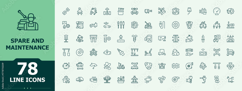 Spare And Maintenance icon collection. Spare icon set. Contains such symbols as parts, vehicle, service, repair, element, part, automobile and more. Vector collections. #1778750209