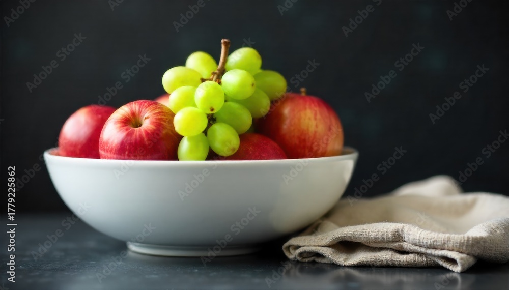 Sparkling clean kitchen counter with fresh produce and cleaning supplies, showcasing hygiene and order. A high angle shot of a spotless, polished granite kitchen countertop. Sunlight streams in, #1779225862