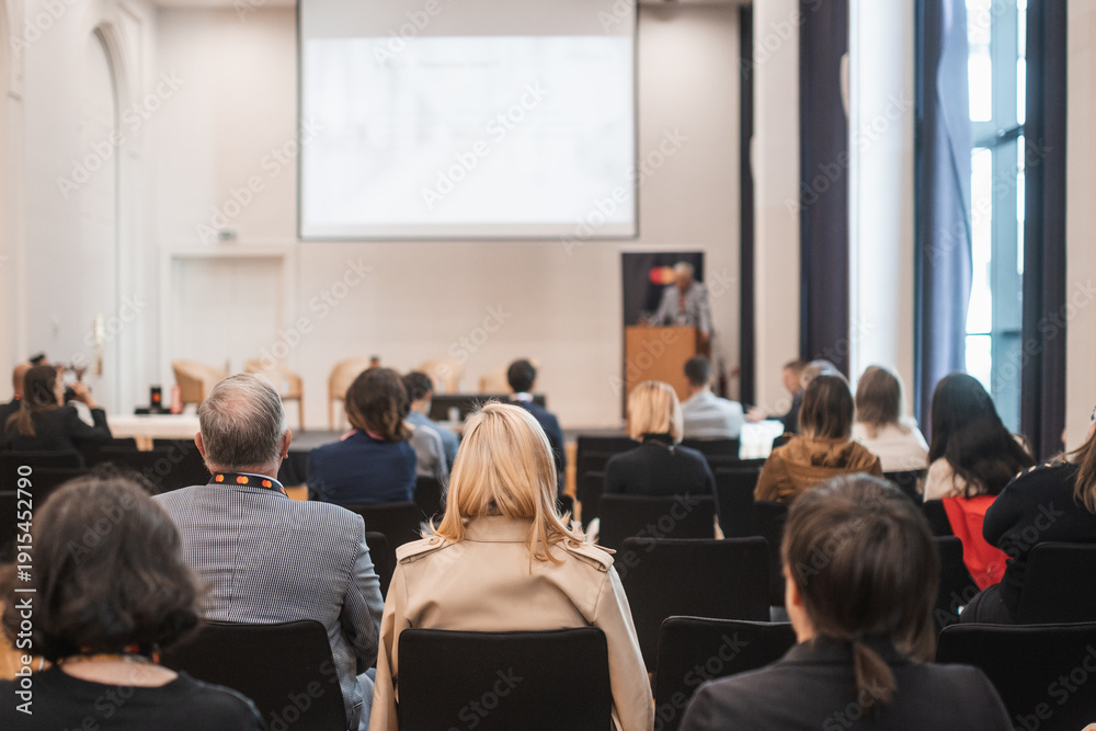 Speaker giving a talk in conference hall at business event. Rear view of unrecognizable people in audience at the conference hall. Business and entrepreneurship concept #1915452790
