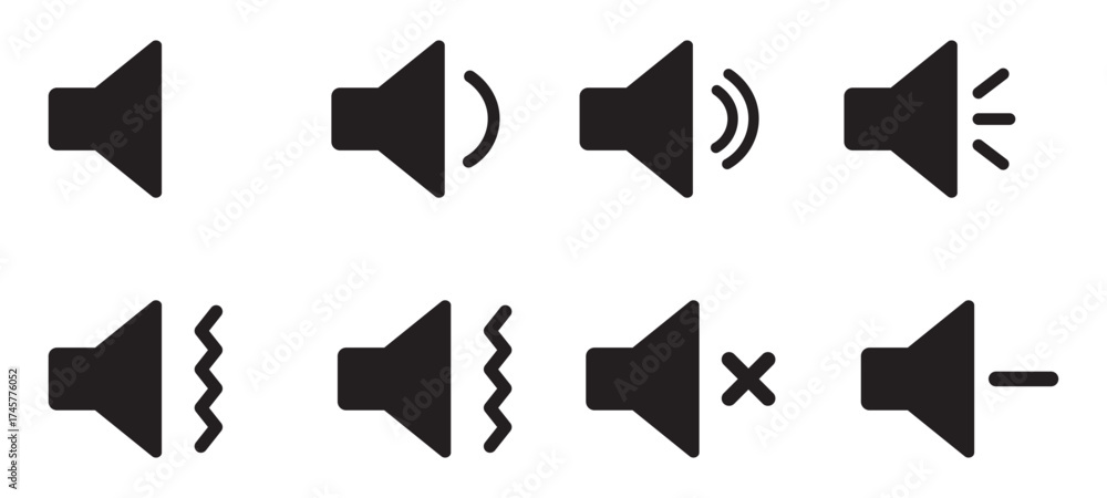 Speaker icon set on transparent background. Mute and unmute volume sound. #1745776052