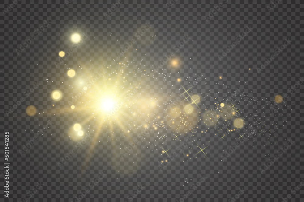 Special lens flash, light effect. The flash flashes rays and searchlight. illust.White glowing light. Beautiful star Light from the rays. The sun is backlit. Bright beautiful star. Sunlight. Glare. #501541285