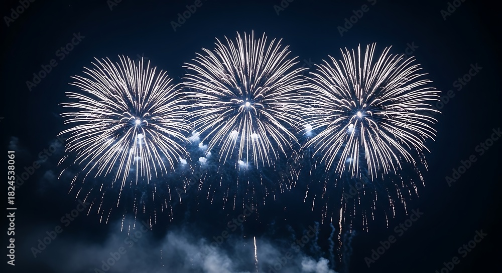 Spectacular fireworks display illuminates the night sky with vibrant bursts of light creating a mesmerizing and celebratory atmosphere perfect for capturing #1824538061
