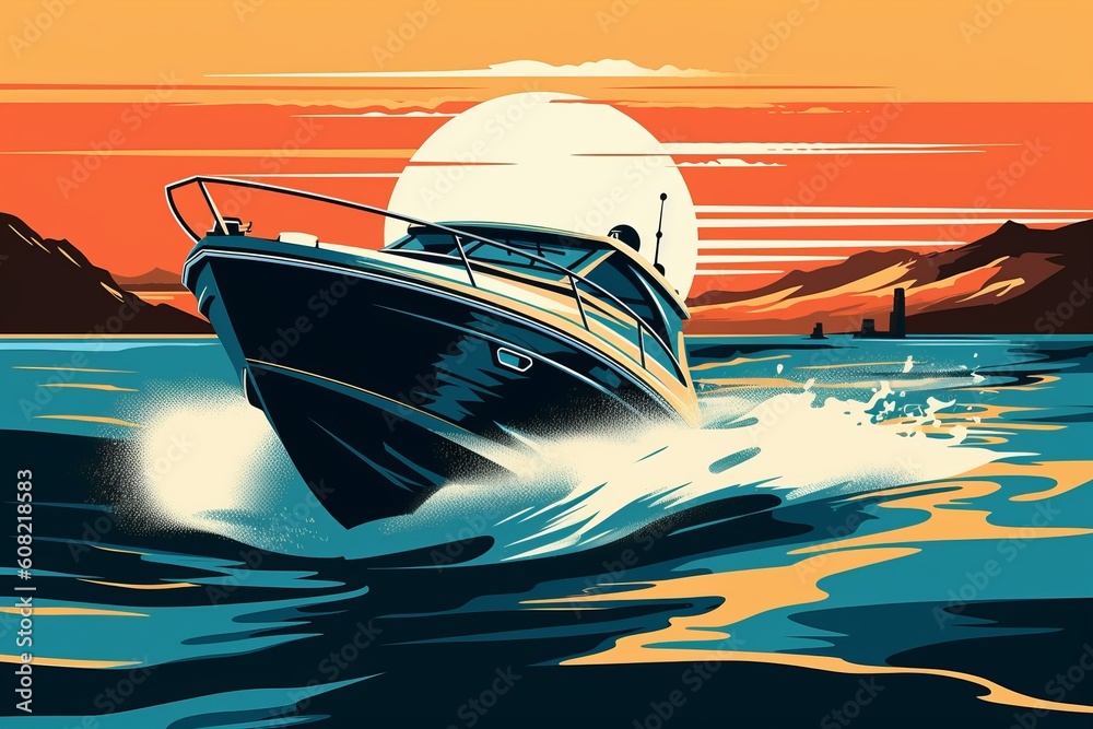 Speed boat on waves, action vector graphic. Beautiful illustration picture. Generative AI #608218583