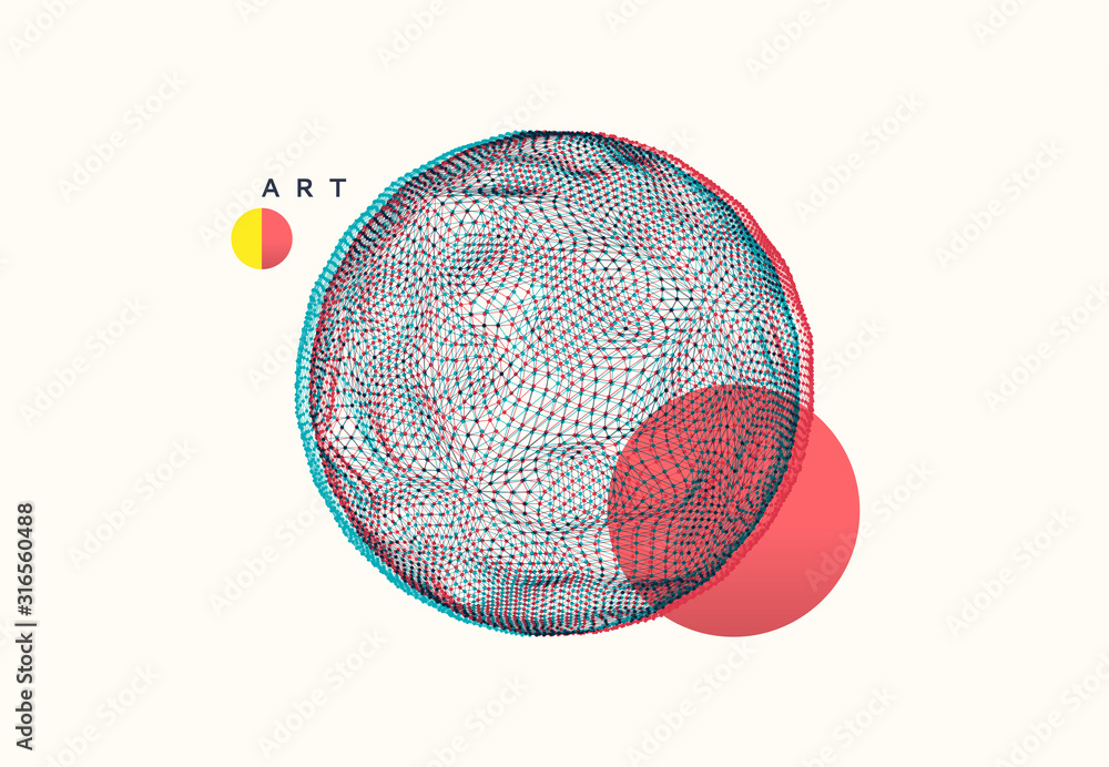 Sphere with connected lines and dots. Global digital connections. Abstract 3d grid design. Technology style. Vector composition for cover, poster, flyer or banner. #316560488