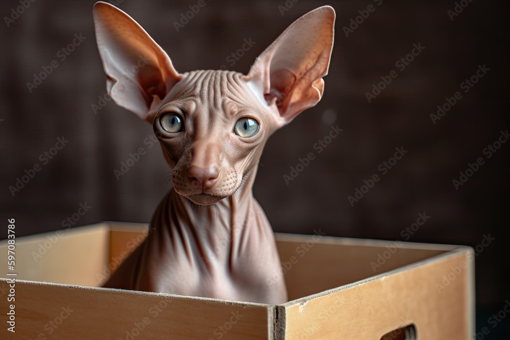 Sphinx cat resting inside a crate. Generative AI #597083786