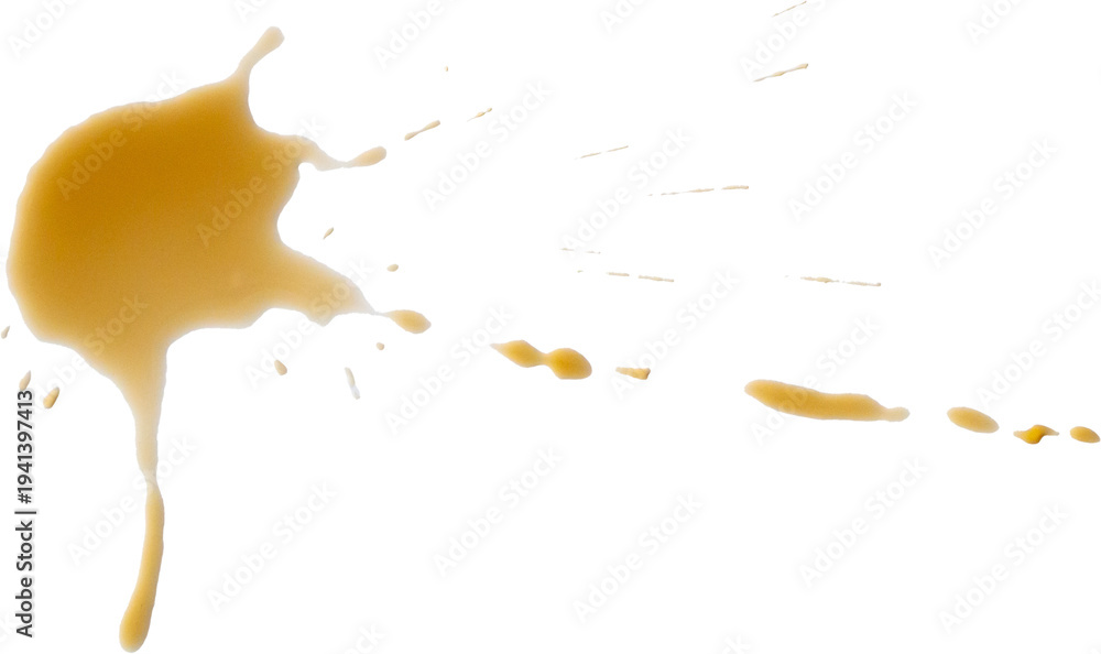Spilled Coffee Stain on White Table Surface, Top View Minimalist Background #1941397413