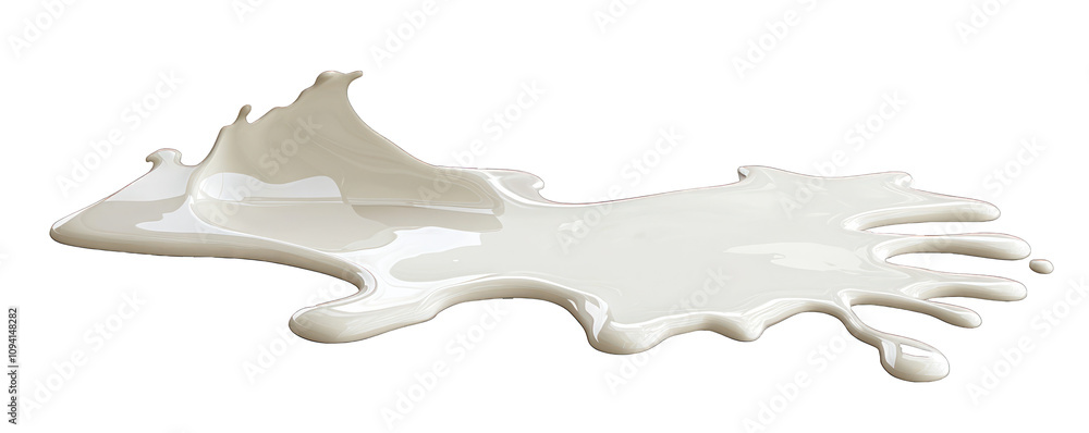 Spilled milk puddle neatly detailed with a path on a white canvas. #1094148282