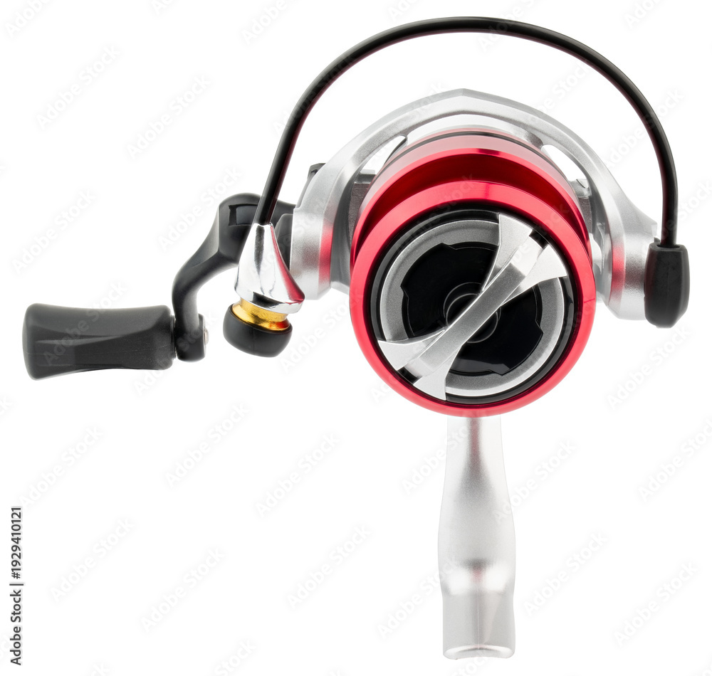 Spinning fishing reel with metal spool and ergonomic handle. Professional angling equipment for freshwater and saltwater fishing, casting, spinning, sport fishing and outdoor recreation use. #1929410121