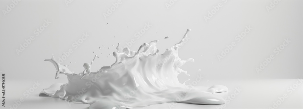 Splashed Delight: A dynamic splash of milk explodes with a captivating display, revealing the fluid's elegant form. #1979063953