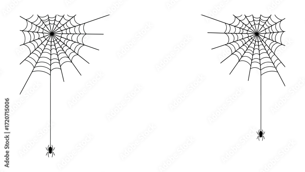 Spooky Cobweb Design: A minimalist illustration depicting intricate cobwebs, a symbol of mystery and the eerie atmosphere of a Halloween night. #1720715006