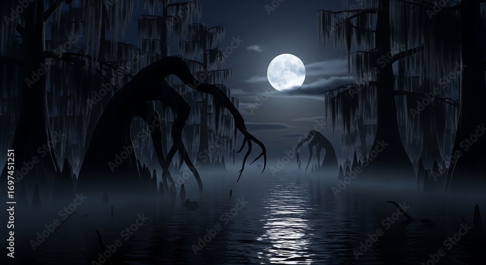 Spooky Halloween Swamp Scene Under a Full Moon #1697451251
