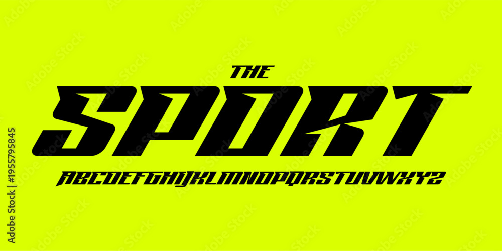 Sporty italic alphabet, wide bold font for powerful dynamic lettering, swift automotive logo, energetic daring headline, car racing branding. Vector typeset #1955795845