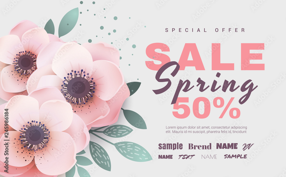 Spring sale with beautiful flowers. Vector illustration template. #245986184