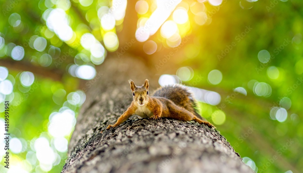 Squirrel Lit by Sunlight on a Tree #1819591951