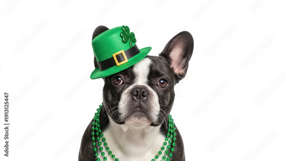 St. Patrick's Day. Dog in a leprechaun hat on white background #1913125447