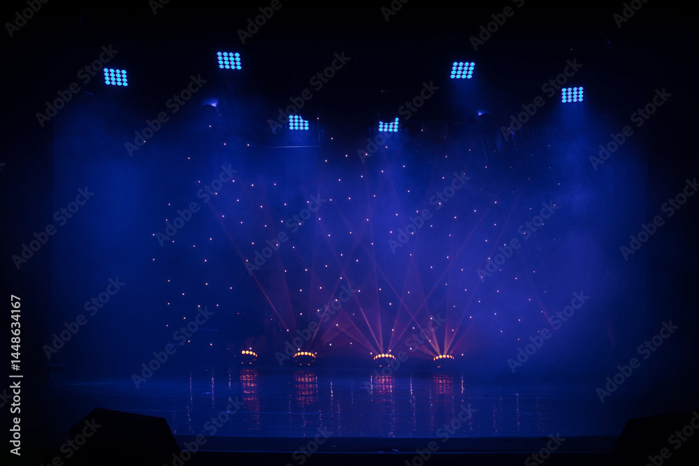 stage light with colored spotlights and smoke, concert and theatre scene #1448634167