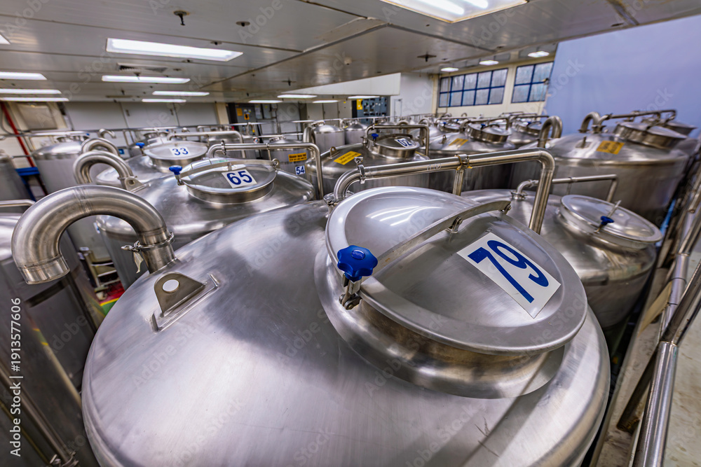 Stainless shiny steel pipes, tanks for the cream cosmetic industry cleaning #1913577606