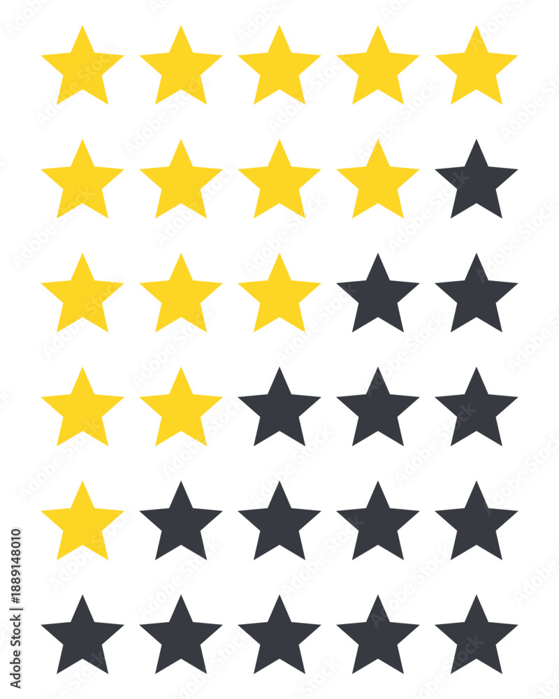 Star Rating Scale Illustration with Yellow and Gray Stars Customer Review Feedback System Five Level Rating Icons for Web App UI Design Satisfaction Evaluation Concept #1889148010