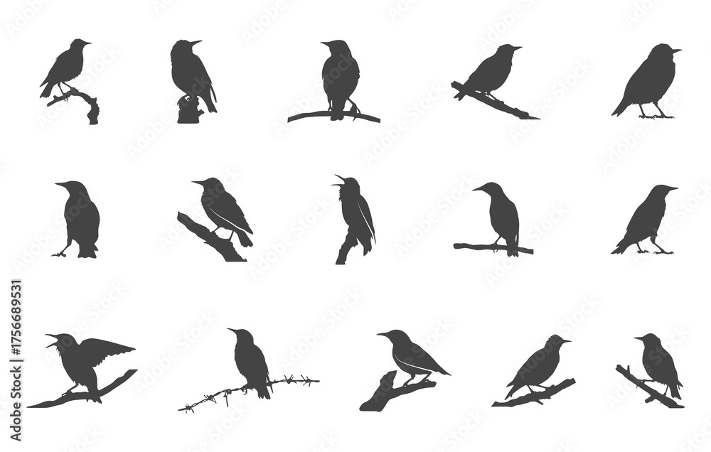 Starling bird svg, Starling birds silhouette, Common starling svg, European starling svg, Starling svg, Starling birds vector. #1756689531
