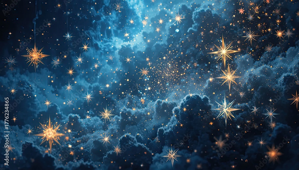 Stars sparkle and glimmer in an abstract background, creating a surreal and enchanted ambiance. #1776234865