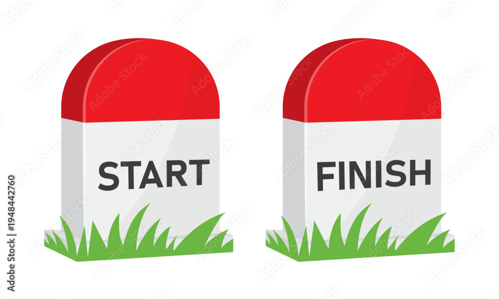 Start finish road milestone markers race route distance signposts for marathon running navigation path journey vector illustration. #1948442760