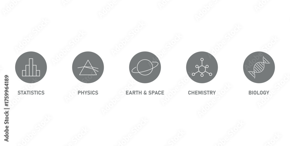 Statistics, Physics, Earth, Space, Chemistry and Biology Icon Line. #1759964189