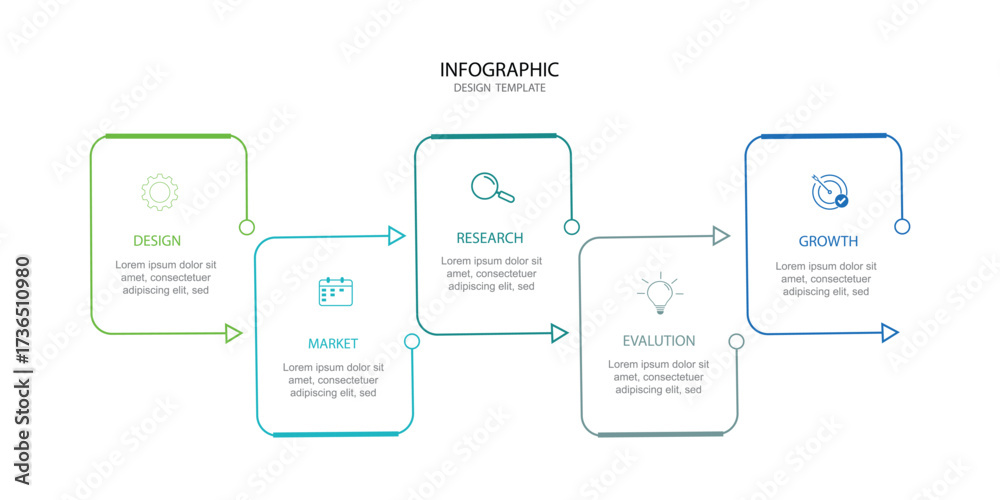 5 step process or option infographic template vector element with icons suitable for web presentation and business information #1736510980