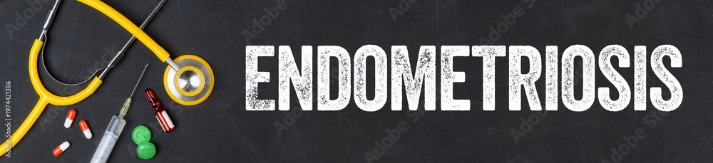 Stethoscope and pharmaceuticals on a blackboard - Endometriosis #1974421386