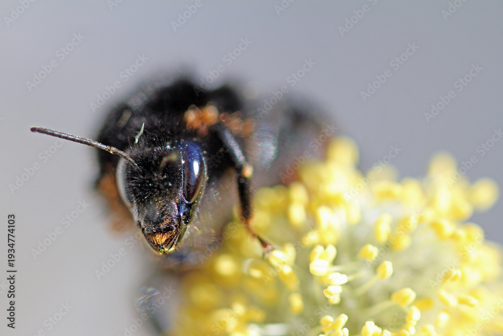 stone bumblebee with mites on Willow catkins #1934774103