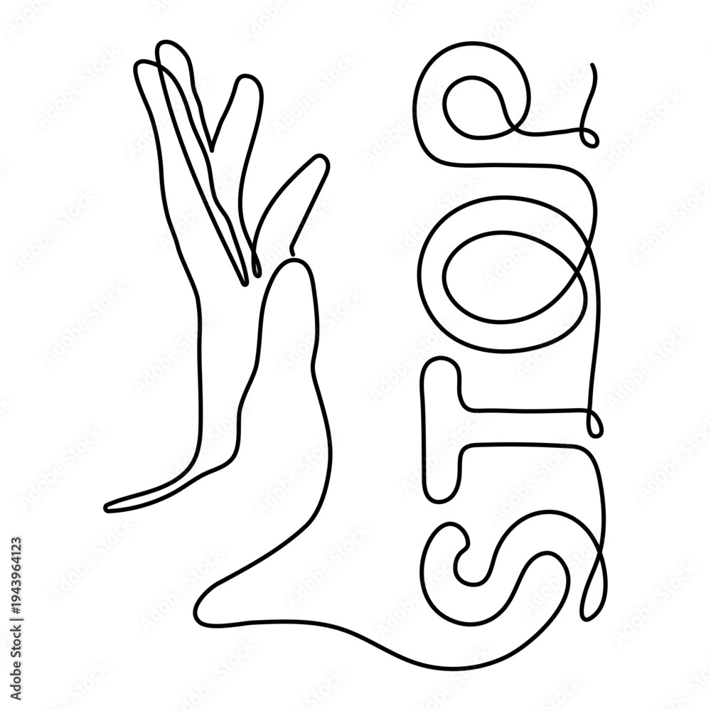 Stop hand sign, hand-drawn attention warning danger signal, prohibition hand palm message symbol, no don't continuous drawing contour gesture outline. Editable stroke. Isolated. Vector illustration #1943964123