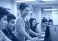 Students collaborate with a teacher in a computer lab classroom during a lesson #1661307468