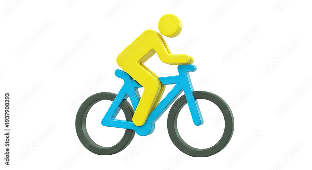 Stylized Cyclist Icon: Yellow Figure on Blue Bicycle #1937908293