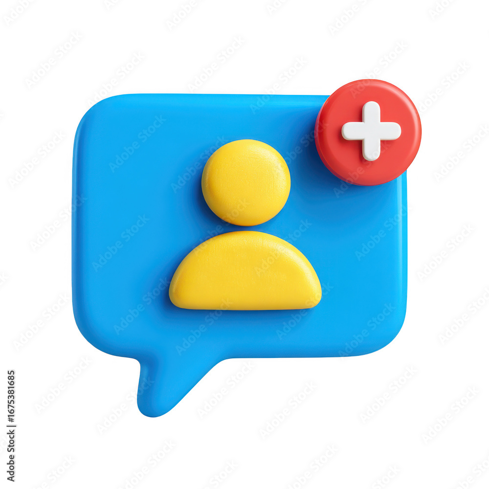Stylized 3d blue chat bubble with a yellow person icon and red add notification isolated on transparent background #1675381685
