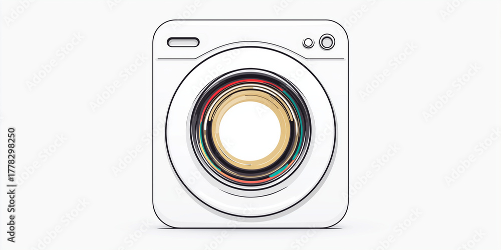 Stylized illustration of camera lens integrated into square frame, resembling washing machine. design features concentric circles and minimalist aesthetic #1778298250