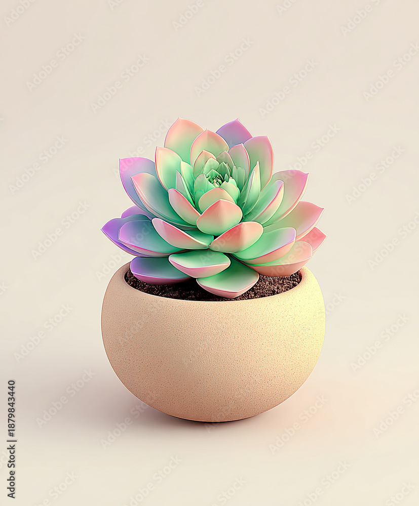 Succulent Plant in Pot, 3D Illustration of Echeveria on White Background, Minimal Design #1879843440