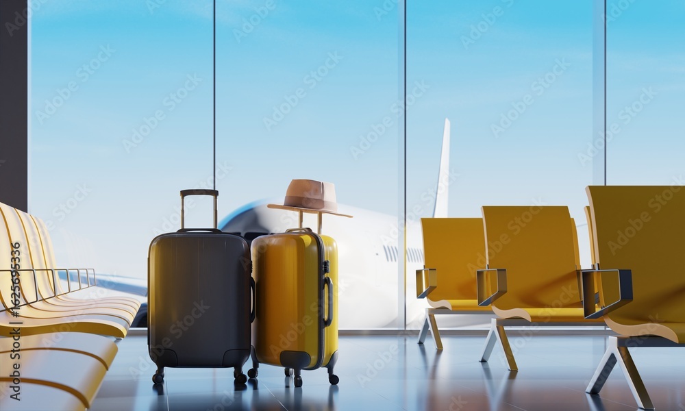 Suitcases at an airport terminal. Travel concept. 3d rendering #1625695336