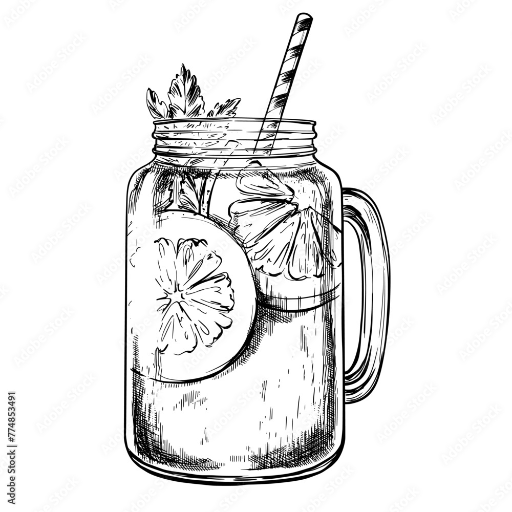 Summer citrus cocktail vintage vector sketch illustration #774853491