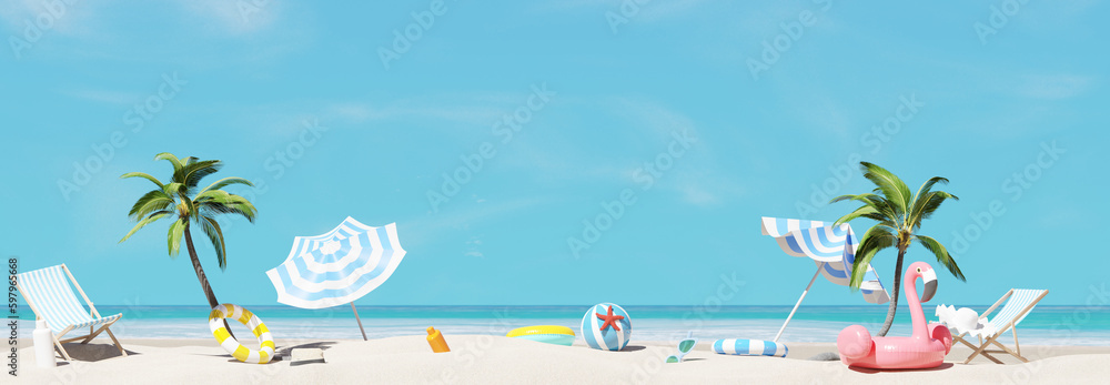 Summer vacation, beach background. 3d rendering #597965668