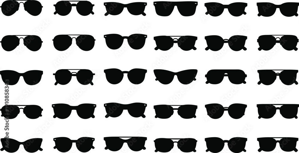 Sunglasses Silhouettes Collection with Aviator Retro and Modern Eyewear Styles Black Vector Set Isolated on White Background #1910858343