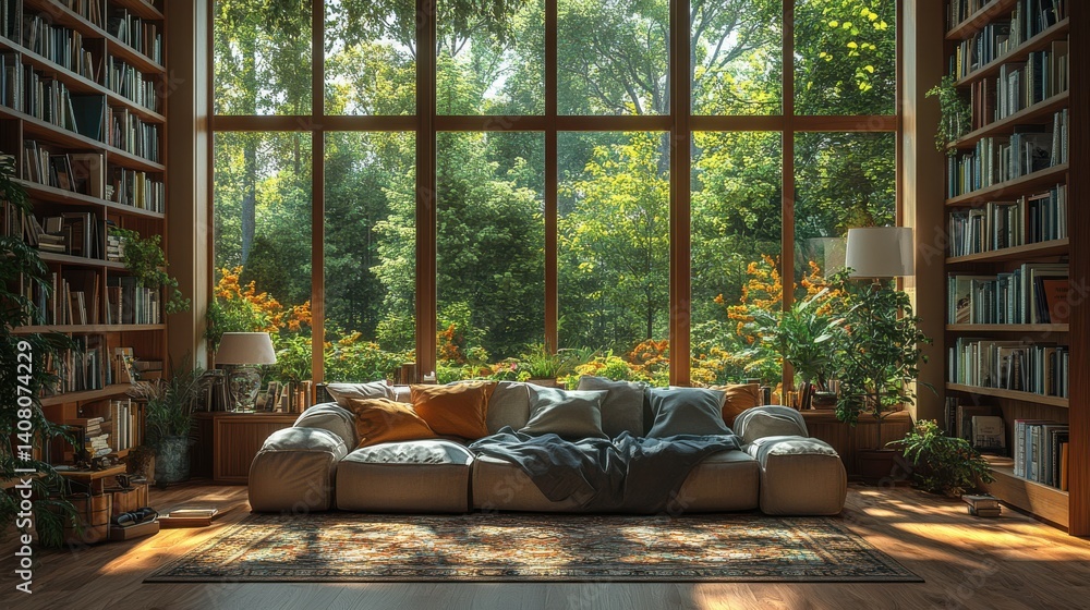 sunlit cozy elegant home library,window,books empty room zoom virtual backgrounds cozy interior backdrops living room backgrounds for virtual meetings,stock image #1408074229