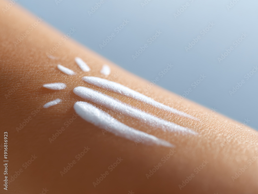 Sunscreen lotion on skin with sun shape design for sun protection and skin care in bright daylight #1916816923