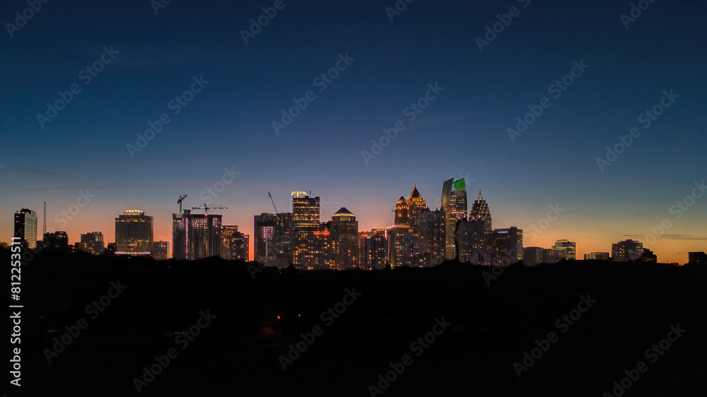 Sunset sky and Atlanta skyline shot from Piedmont Park at dusk #812253511