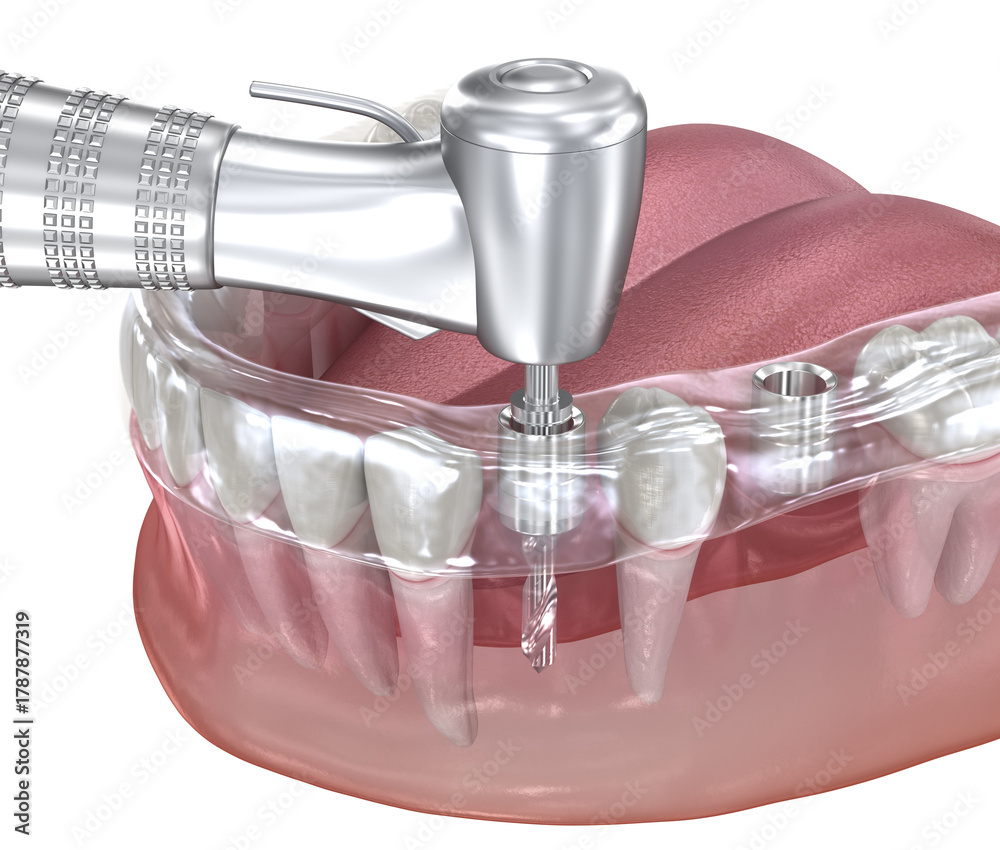 Surgical guide for implantation procedure. Dental 3D illustration. #1787877319