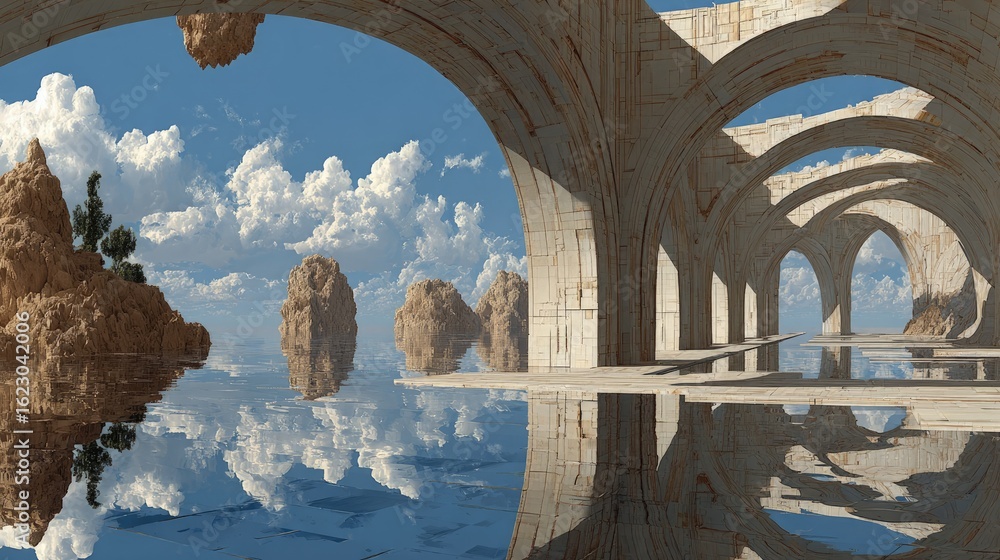 Surreal abstract background architecture lines bending gravity floating islands dreamlike fantasy landscape #1623042006
