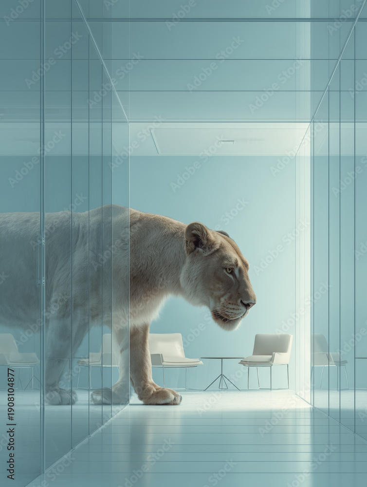 Surreal Animal Inside Minimalist Interior Space #1908104877